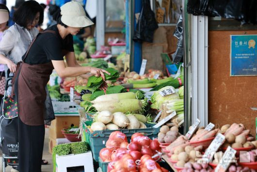 [서울=뉴시스] 이영환 기자 = 31일 오후 서울 동대문구 청량리종합시장에서 농산물이 판매되고 있다.한미 무역협상 타결과 관련해 도널드 트럼프 미국 대통령은 한국이 농산물 등 미국산 제품을 받아들이기로 했다고 밝혔으나 정부는 쌀과 소고기는 추가 개방하지 않는 걸로 합의했다고 전했다. 2025.07.31. 20hwan@newsis.com |
