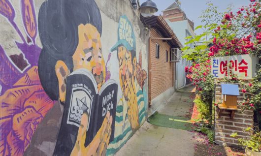 배다리골목을 걷다 보면 화려한 그림이 그려진 벽화를 만난다. 최갑수 제공 |
