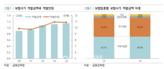 최근 하나금융경영연구소의 보고서에 따르면 지난해 보험사기 적발금액은 1조1502억원으로 역대 최대치를 기록했다. 최근 5년간 연평균 6.4%씩 증가했으며, 적발 인원은 10만8997명에 달했다. 특히 보험업 종사자와 60대 이상 고령층에서 증가세가 두드러졌다. 보험업 종사자의 사기 적발 건수는 전년 대비 11.1% 늘었고, 60대 이상 비중은 13%포인트 급증했다.