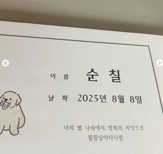 그는 “함께한 추억이 너무 많고, 곳곳에 순칠이 냄새가 그대로 남아있는데 칠이만 없다. 가슴이 찢어지고 숨도 안 쉬어지고, 어떻게 표현이 안 될 만큼 슬프다”며 오열했다. 이어 “3일 전만 해도 꼬리치며 다가오던 아가가 이렇게 갑자기 떠날 줄 몰랐다. 정말 많이 사랑했고 행복했다”고 애틋함을 전했다.