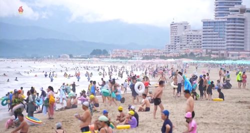 북한 원산갈마해안관광지구에 사람들로 연일 흥성. [사진 출처 = 조선중앙TV화면] |
