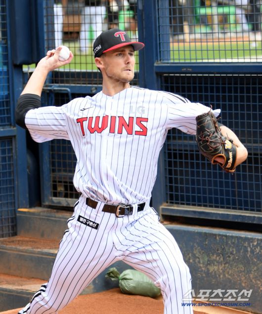 9일 잠실구장에서 열린 LG 트윈스와 한화 이글스의 경기. LG 톨허스트가 불펜 피칭을 하고 있다. 잠실=박재만 기자 pjm@sportschosun.com/2025.08.09/