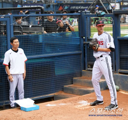 9일 잠실구장에서 열린 LG 트윈스와 한화 이글스의 경기. LG 톨허스트가 염경엽 감독이 지켜보는 가운데 불펜 피칭을 하고 있다. 잠실=박재만 기자 pjm@sportschosun.com/2025.08.09/