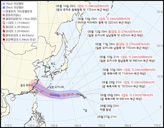 기상청은 아직 태풍 발생 초기 단계인 만큼 경로와 세력은 유동적이라며, 최신 태풍 정보를 참고할 것을 주문했다.