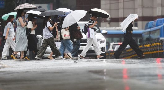 9일 기상청에 따르면 충청권은 새벽까지, 전북·경상권과 제주도는 오후까지 비가 이어지겠다. 오전 일부 지역에 매우 강한 비가 쏟아지는 곳도 있겠다.