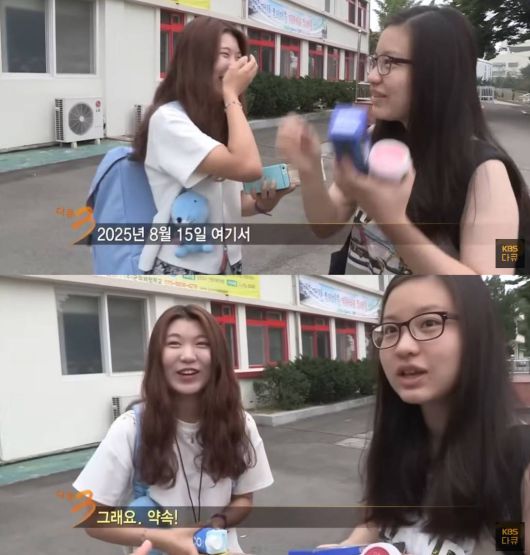 당시 두 여학생들은 카메라 감독에게 "2025년 8월 15일 여기서 만나요"라고 말했고, 카메라 감독은 "그래요 약속"이라고 답했다.