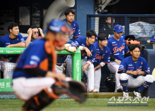9일 잠실구장에서 열린 LG 트윈스와 한화 이글스의 경기. 한화 최재훈이 선발 엄상백을 격려하고 있다. 잠실=박재만 기자 pjm@sportschosun.com/2025.08.09/