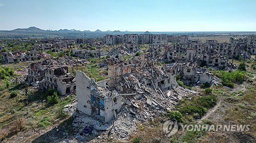7일(현지시간) 폐허 상태의 도네츠크주 마린스카 전경 |