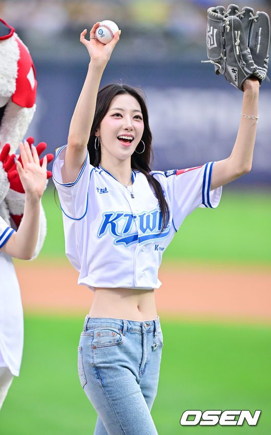경기 앞두고 시구 마친 하이키 리이나가 팬들에게 인사하며 그라운드를 빠져나가고 있다. 2025.08.09 / soul1014@osen.co.kr