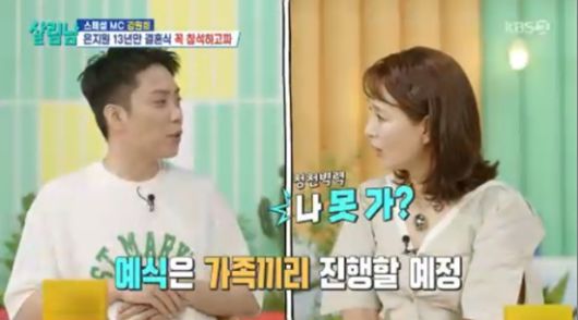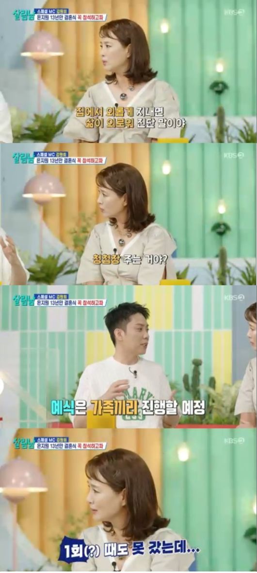 은지원은 김원희가 청첩장을 주는지 묻자 가족끼리 예식을 진행할 예정이라서 청첩장은 없다고 했다.