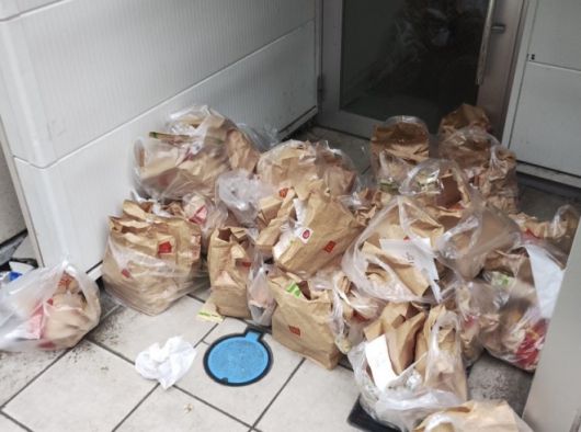 해당 사진에는 햄버거와 음료 등이 담긴 포장 봉투가 비닐봉지에 담긴 채 맥도날드 앞 길바닥에 고스란히 놓여 있는 모습이 담겼다. 사은품을 받기 위해 한 번에 해피밀 여러 개를 주문한 듯 콜라 5개가 한 봉지에 들어 있기도 했다.