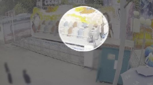 이날 오전 11시45분께 제천시 모산동 의림지 한 놀이공원에서 놀이기구를 타던 초등학생 4명이 자리에서 튕겨 나오는 CCTV 화면. (사진=KBS 보도 캡처) |