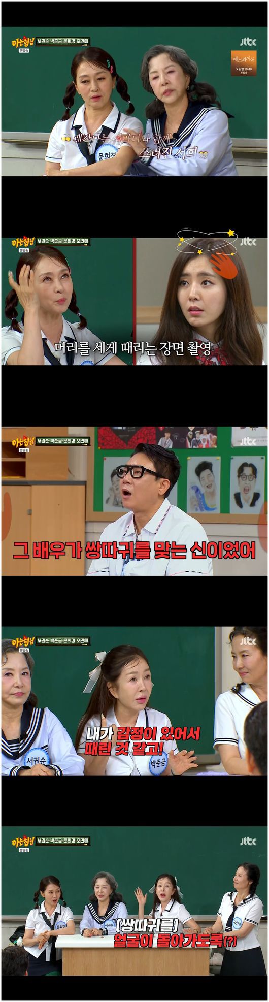 한편 문희경은 리허설에 없던 따귀를 한 대 더 맞았다가 눈물을 쏟았다고 고백했다 .문희경은 “어떤 선배랑 리허설도 한 적이 있는데, 뺨을 한 대만 맞기로 했는데 선배가 두 대를 때리더라. 분장실 와서 울었다”라고 말했고, 박준금은 "네가 눈물이 있냐"라며 놀렸다.