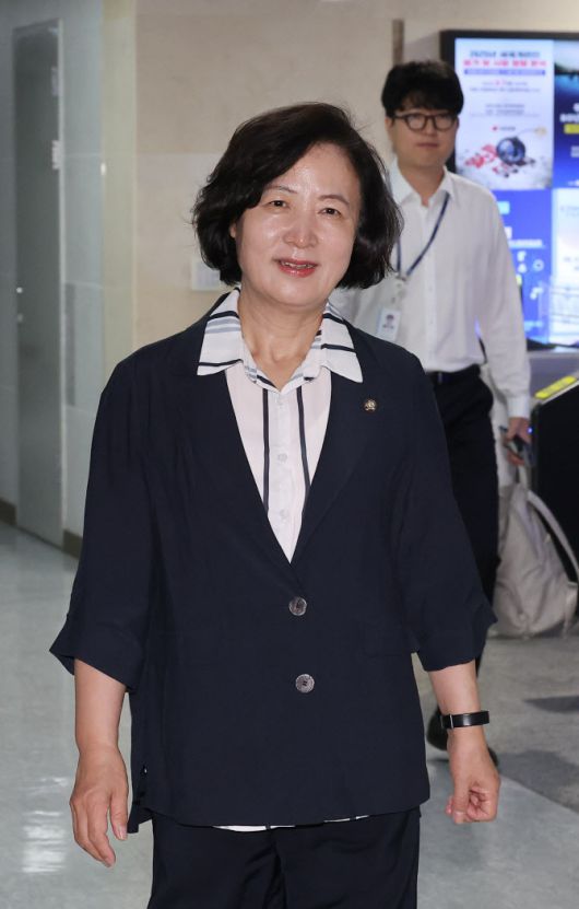 주식 차명거래 의혹에 휘말린 이춘석 의원의 사임으로 공석이 된 국회 법제사법위원회 위원장에 내정된 더불어민주당 추미애 의원이 6일 서울 여의도 국회 의원회관 내 자신의 의원실로 들어가고 있다. (사진=연합뉴스) |