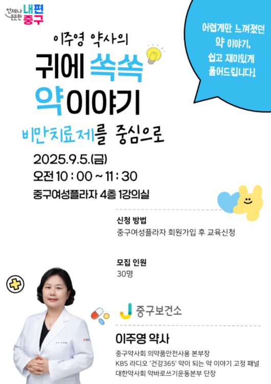 중구 관계자는 “의약품은 효과도 있지만, 부작용 우려도 큰 만큼 정확한 정보가 중요하다”며 “이번 특강이 건강한 체중관리를 고민하는 주민들에게 실질적인 도움이 되길 바란다”고 밝혔다.