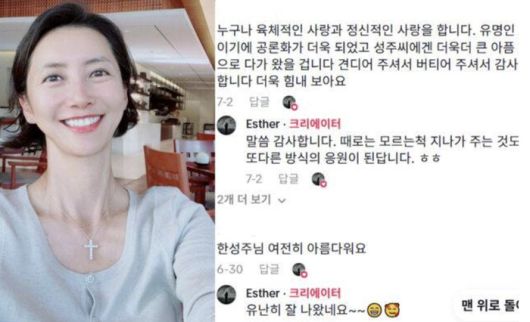 특히 한 네티즌이 “누구나 육체적인 사랑과 정신적인 사랑을 합니다. 유명인이기에 공론화가 된 것 같다. 견뎌 주셔서 감사하다”라는 응원의 목소리를 내자, “때로는 모르는 척 지나가 주는 것도 또 다른 방식의 응원이 된답니다”는 답글을 달았다. 이 외에도 여러 네티즌들의 댓글에 모두 답글을 다는 열정을 보였다.