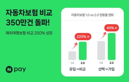 [디지털데 네이버페이(Npay, 대표이사 박상진)가 지난해 1월부터 시작한 자동차보험비교 누적 이용건수가 350만건을 돌파했다고 10일 밝혔다.