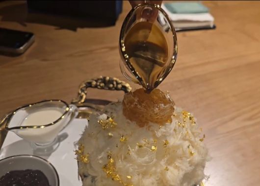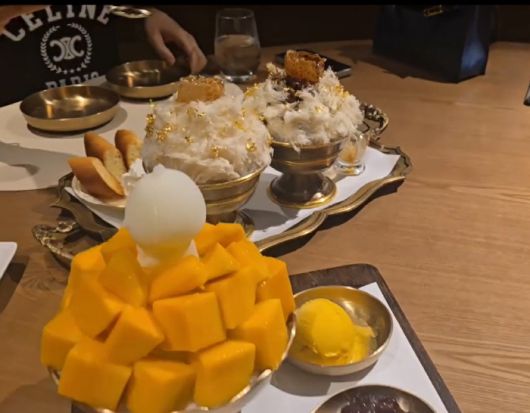 이를 본 팬들은 "빙수가 뭐 저리 럭셔리 하냐", "행복해보인다", "분위기 좋다", "금가루 길만 걸으세요" 등 응원의 메시지를 남겼다.