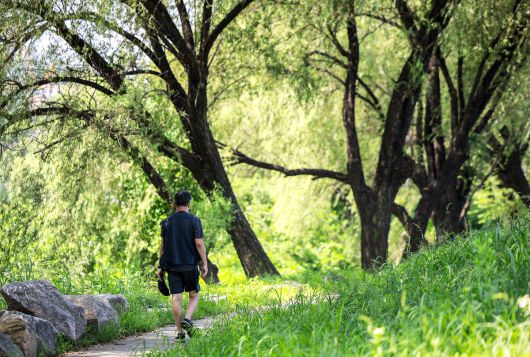 7일 서울 서초구 반포한강공원을 찾은 시민이 산책을 하고 있다. 절기상 입추가 무색할 만큼 무더위가 이어지고 있다. 뉴시스 |