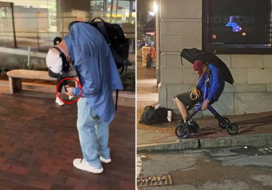 9일(현지시간) 영국 데일리메일에 따르면 미국 민주당 소속 미셸 우 시장이 이끄는 보스턴에서 코플리 플레이스 인근에서 한 남성이 허리를 구부린 채 휴대전화를 사용하는 모습이 목격됐다. 이 장면은 지나가던 시민이 촬영했으며 지역 반(反)우 시장 성향 단체의 사회관계망서비스(SNS)에 공유됐다.