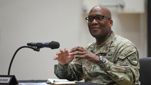 ▲ 제이비어 브런슨 주한미군사령관이 지난 8일 경기 평택시 캠프 험프리스에서 기자간담회를 하고 있다.