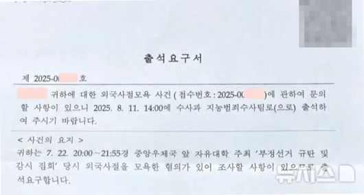 [서울=뉴시스] 8일 자유대학이 한 사회관계망서비스(SNS)에 올린 출석요구서 모습이다. (사진=자유대학 SNS 갈무리) 2025.08.09. photo@newsis.com |