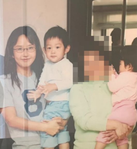 사진 속 최진실은 아들 최환희를 안은 채 미소 짓고 있다. 최준희는 이모할머니 품에 안겨있다.