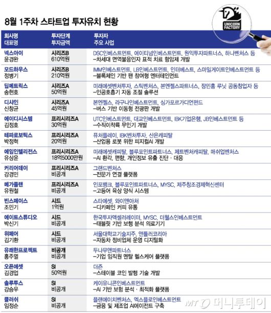 8월 1주차 스타트업 투자유치 현황/그래픽=최헌정 |