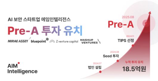 생성형 AI(인공지능) 보안 전문 기업 에임인텔리전스가 프리시리즈A 투자를 유치했다. 이번 투자 라운드에는 미래에셋캐피탈이 리드하고, 블루포인트파트너스의 LG유플러스 전략 펀드, 일본 제트벤처캐피탈, 기존 투자자인 매쉬업벤처스가 참여했다.