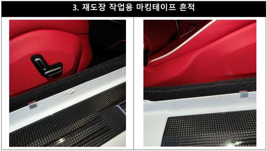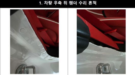 피해를 입은 구매자에 따르면, 지난해 9월 국내 페라리 공식 수입업체 FMK를 통해 약 5억1,000만 원에 차량을 인도받았으며, 최근 중고차 성능 점검 과정에서 차량 우측 뒤 휀더 부분의 수리 흔적, 볼트 재체결 흔적, 재도장 작업용 마킹테이프 흔적, 몰딩 후 재도장 페인트칠 흔적 등이 확인됐다고 주장했다.
