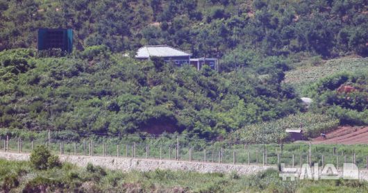 [파주=뉴시스] 조성우 기자 = 북한이 대남 확성기 철거를 시작한 것으로 확인된 10일 경기도 파주시 오두산 통일전망대에서 북한 황해북도 개풍군 일대가 보이고 있다. 2025.08.10. xconfind@newsis.com