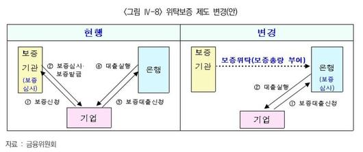 나아가 신용보증기금·기술보증기금 등 정책보증금융을 활용하는 이른바 ‘위탁보증’ 방안도 제시된다. 현행 보증체계는 신보·기보가 기업을 심사해 보증서를 발급하면 은행이 해당 기업에 대출을 내주는 구조여서 대출 받으려는 기업의 사업성을 은행이 직접 심사할 유인이 낮다. 김석기 선임연구위원은 “창업기업이야 사업성을 평가하기 어렵고 리스크도 높으니 지금처럼 보증기관이 보증심사를 계속하는게 맞겠지만, 이미 어느 정도 성장해 사업성을 평가할 수 있는 기업(장기 보증 상태)에는 보증연장 심사를 신보·기보가 아니라 은행이 직접 진행하도록 바꿀 필요가 있다”고 말한다. 보증기관이 사전에 각 은행에 보증총량을 위탁·할당하면 은행이 사업성 평가·심사 역량을 높여 직접 보증서를 발급하고 대출을 실행하는 모델인데, 이렇게 바뀌면 ‘사업성에 기반한 대출 모델’이 금융권에 확대될 수 있다.