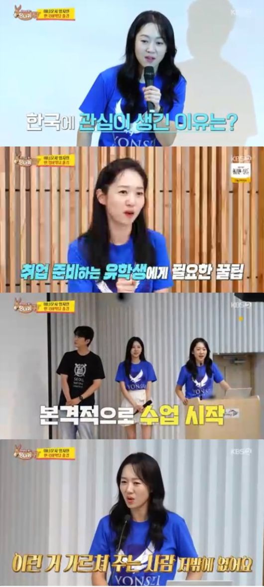 10일 방송된 KBS 2TV '사장님 귀는 당나귀 귀'에서는 엄지인이 모교인 연대 어학당 특강에 나서는 모습이 전파를 탔다.