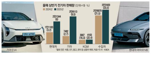 이런 전기차 판매 호조는 전기차 신차 효과로 해석된다. 기아는 브랜드 최초의 전기 세단 EV4 판매를 시작했다. 올해 상반기 EV4는 3277대 판매됐다. 소형 전기SUV인 EV3 역시 작년 7월부터 판매를 시작하며 상반기에 1만2525대가 팔렸다.