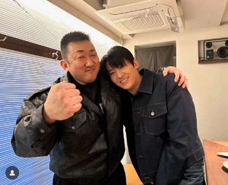 [OSEN=박하영 기자] 방송인 덱스가 마동석 품에 안겼다.