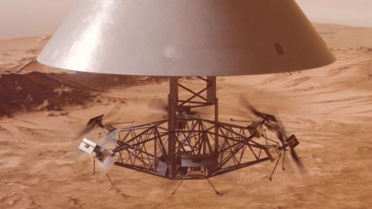 에어로바이런먼트가 미래를 상상해 컴퓨터 그래픽으로 구현한 동영상을 보면 비행 캡슐은 우주에서 화성 대기권으로 돌입한 뒤 낙하산을 활짝 펼친다. 지상으로 떨어지는 속도를 줄이는 것이다. 그러더니 돌연 비행 캡슐 바닥을 공중에서 날려버리고, 내부에 실린 무인 헬기 6대를 외부에 드러낸다.