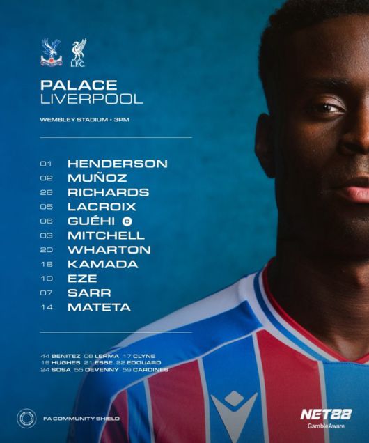 이에 맞선 팰리스는 3-4-2-1 포메이션을 꺼냈다. 최전방에 마테타가 나선다. 바로 밑에 에제와 사르가 호흡을 맞춘다. 미드필더는 미첼, 와튼, 카마다, 무노즈가 형성한다. 쓰리백은 게히, 라크로이스, 리차드슨이 구축한다. 골키퍼 장갑은 헨더슨이 낀다.