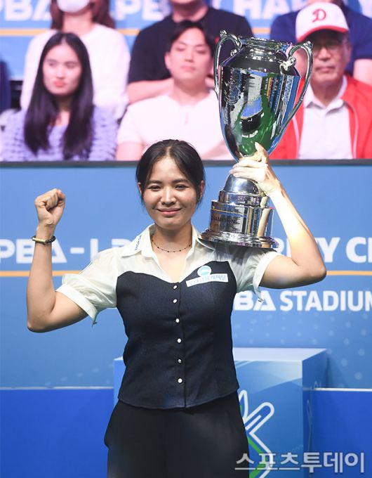 [고양(경기)=스포츠투데이 팽현준 기자] 10일 경기도 고양 킨텍스 PBA스타디움에서 열린 'NH농협카드 LPBA 채리티 챔피언십' 김민아와 스롱 피아비의 결승, 스롱 피아비가 세트스코어 4-1로 우승을 차지하고 있다. 2025.08.10. [스포츠투데이 팽현준 기자 sports@stoo.com]