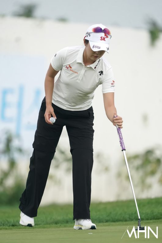 김재희(SK텔레콤)가 1번홀 경기를 펼치고 있다.
