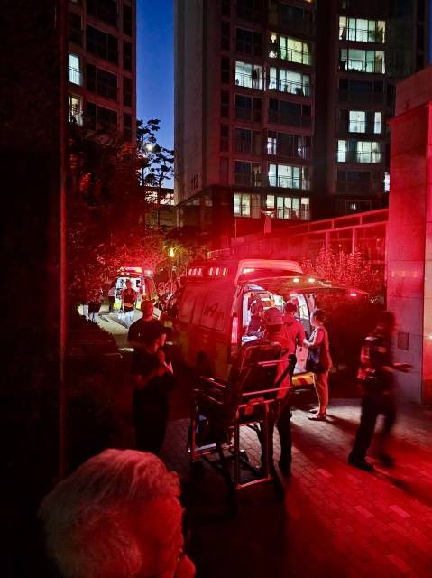 10일 오후 7시 40분께 서울 성북구 석관동 한 아파트에서 20대 남성이 60대 남성 2명을 모종삽으로 폭행하는 사건이 발생했다. 사진은 이송되는 피해자의 모습. [시청자 제공. 재판매 및 DB 금지] |