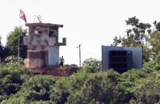북한이 대남 확성기 철거를 시작한 것으로 확인된 10일 경기도 파주시 접경지역에서 바라본 북한 군 초소에 대남 확성기가 설치돼 있다. 2025.08.10. 파주=뉴시스 |