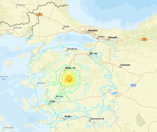 터키재난청(AFAD)에 따르면 지진은 이날 오후 7시 53분 터키 최대 도시 이스탄불 에서 230km 떨어진 서부 발리케시르 주에서 발생했으며 몇 분 후 규모 4.6의 여진이 이어졌다.