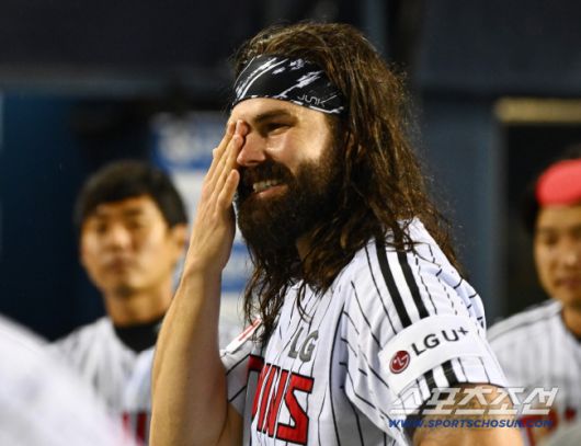 20일 서울 잠실구장에서 열린 두산-LG전. 3회말 우천으로 경기가 취소됐다. LG에서의 마지막 등판이 경기가 취소된 후 켈리가 동료들과 작별인사를 했다. 눈물 흘리는 켈리. 잠실=정재근 기자 cjg@sportschosun.com/2024.7.20/ |