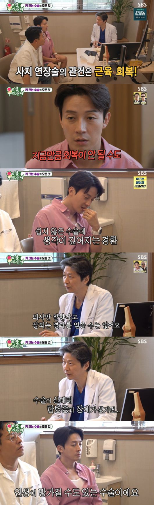 이후 사지연장술에 관한 자세한 상담을 받은 허경환은 "이게 제 다리로 돌아오냐"며 수술 후 다리 상태를 물었다.