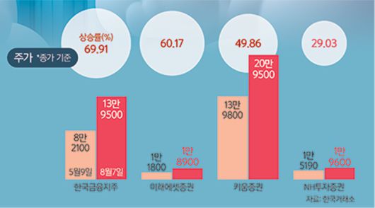 고연수 하나증권 연구원은 “상법 개정을 계기로 국내 증시로의 자금 유입이 지속할 것으로 보인다”며 “금리 인하와 주가 상승이 맞물린 상황에서 브로커리지(위탁매매) 및 트레이딩 부문 중심으로 실적 성장이 기대된다”고 설명했다. 박희찬 미래에셋증권 리서치센터장은 “최근 투자자들이 국내주식 투자를 더 활발히 하고 있는 분위기”라며 “하반기까지는 증시를 포함한 증권주 분위기도 나쁘지 않을 것”이라고 내다봤다.