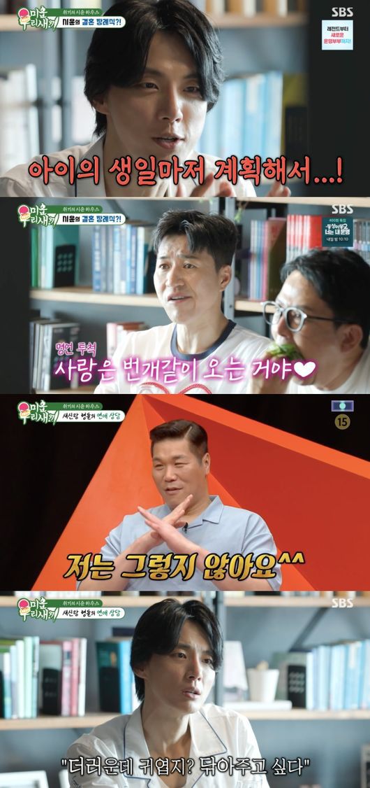 10일 방송된 SBS 예능 ‘미운 우리 새끼’(이하 ‘미우새’)에서는 윤시윤이 ‘새신랑’ 김종민, 김준호에 연애 상담하는 모습이 그려졌다.
