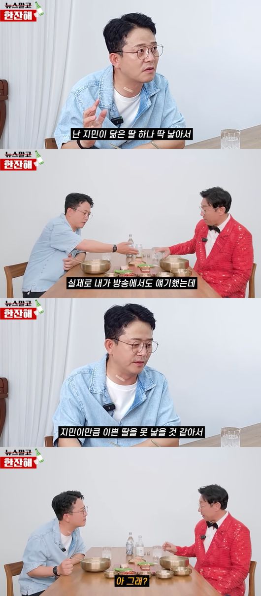 특히 김준호는 "지민이 닮은 딸 하나만 딱 낳아서 끝내려고 한다"라며 "아들은 안 된다. 어렸을 때 의절할 수 있다"라고 말해 웃음을 자아냈다. 정작 김현욱은 "내가 아들, 딸 쌍둥이인데 딸은 아빠 닮는다"라고 말해 웃음을 더했다.