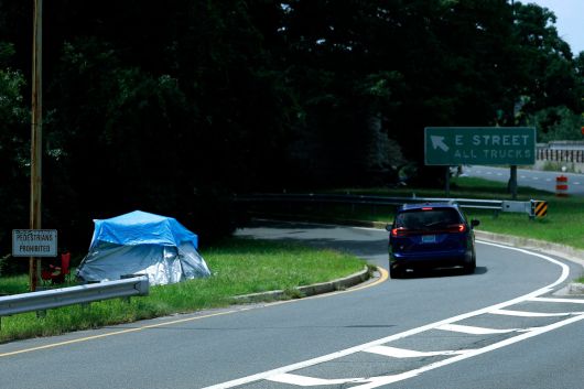워싱턴 D.C. 도로변에 있는 한 노숙자 텐트. |