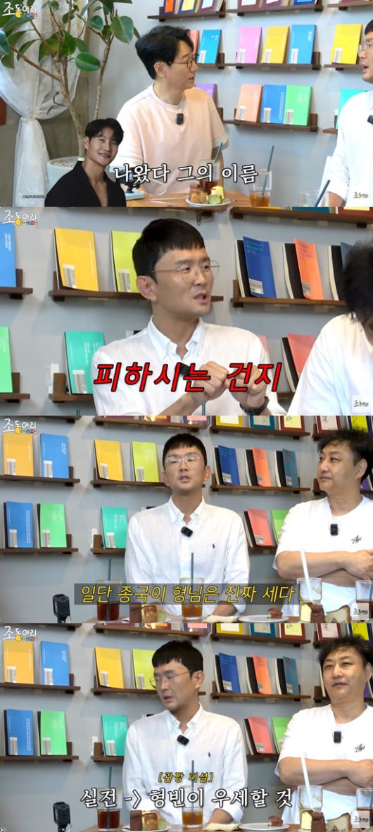 그는 "스파링은 제가 100% 전력으로 못하기도 한다. 종국이 형님과 실전으로 붙으면 제가 우세하지 않을까"라면서도 "근데 최근에 김준호 김지민 결혼식에서 같은 엘리베이터를 탔다. 근데 종국 형님이 저를 약간 견제하는 거 같다"고 다시금 도발했다.