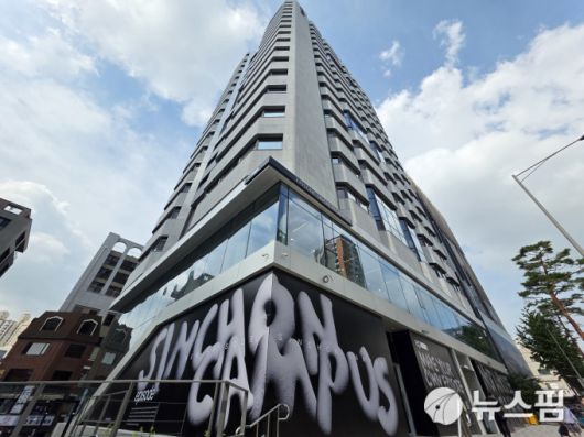 [서울=뉴스핌] 송현도 기자 = 지상 18층까지 뻗어 올라간 '에피소드 신촌 캠퍼스'의 모습. SK디앤디가 선보이는 에피소드 신촌 캠퍼스는 총 393호실을 품은 거대한 공용 주거 공간이다. 2025.08.08 dosong@newspim.com |